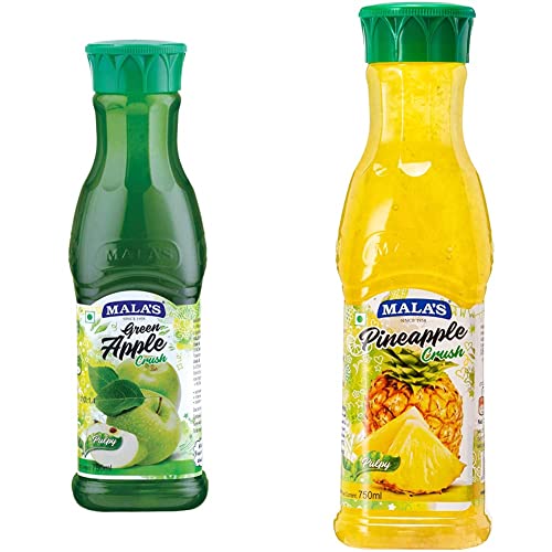Mala's Fruit Crush Green Apple 750ml 1 CountEmerald green and tangy sweet this green apple variety is packed with crisp tart flavour. Mala's Green Apple Crush is having this perfect balance between sweetness and a slight acidic touch. Mala's Green Apple makes delicious Milkshakes Desserts Ice-Creams Smoothies . use as a topping for Ice-cream and desserts.Mala's Crush Pineapple 750 MillilitrePineapple commands attention not just by appearance alone but also by its sweet tangy and acidic taste. Add Malas Pineapple Crush and bring the tropics to you wherever you are. Mala's Pineapple Crush brings a kick of pineapple tartness when added in Milkshakes Ice-Creams Smoothies. Use as Dessert Toppings to pour on your Sundaes and Desserts.