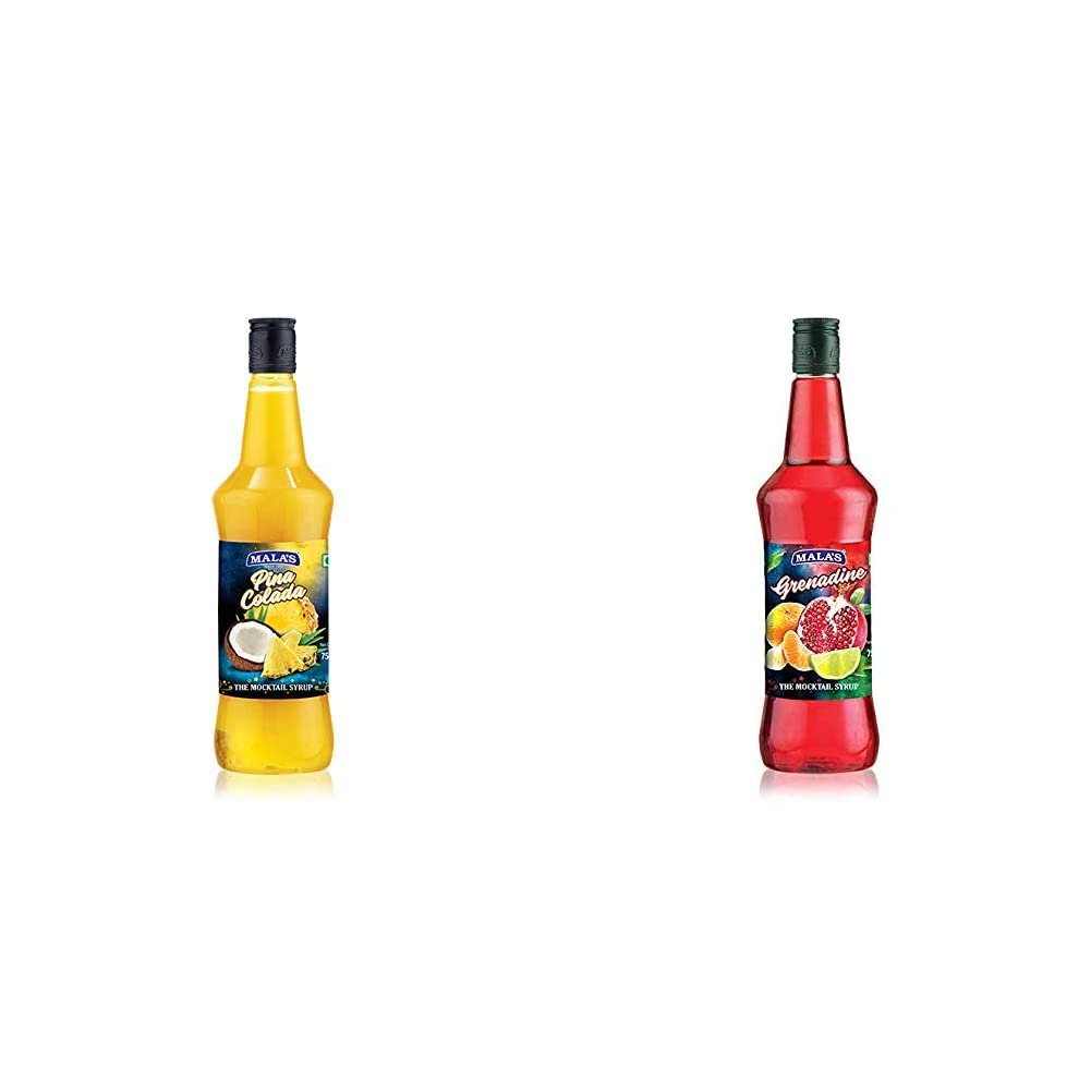 Mala's Fruit Mocktail Syrup Pina Colada 750ml 1 CountA perfect blend of tropical pineapple and the exotic coconuts. Another islanders favourite tropical taste will make you feel you are on a vacation. Mala's Pina Colada blends best to with mocktails cocktails lemonades sodas slushes frozen beverages mojitos!!! Enjoy the tropical blend!Mala's Fruit Mocktail Syrup Grenadine 750ml 1 CountThe deep red colour of this classic drink is what makes your mocktail epic. Mala's Grenadine is versatile in cocktails and mocktails as well as sodas and smoothies. Mala's Grenadine brings both tart and sweetness as flavour punch in cocktails mocktails sodas and lemonades.