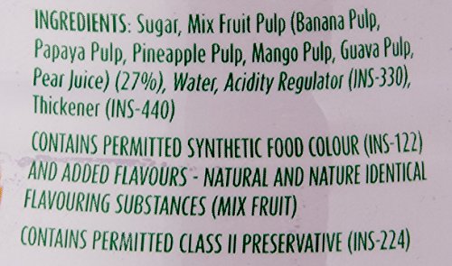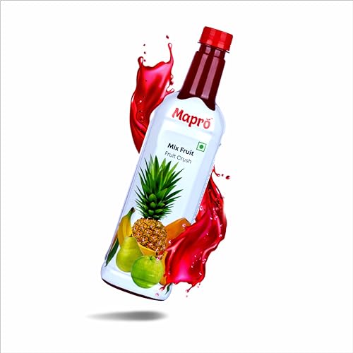 Mix Fruit' brags fruit of every season with tropical mangoes papayas and pineapples; delicious apples strawberries and grapes; and tangy oranges. Blend one part of Mapro mix fruit crush with either four parts water or five parts milk to get a delicious drink.