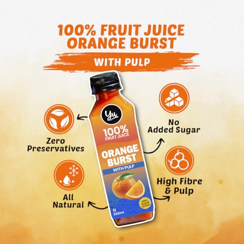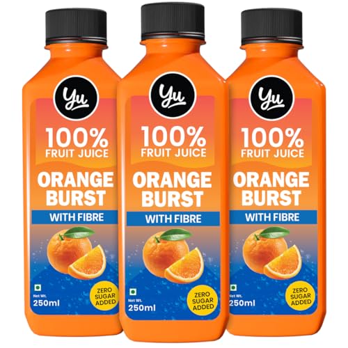 Orange Burst - With Fibre - Pack of 3-100% Fruit Juice - No Added Sugar Healthy Beverage - 100% Natural Ingredients - Zero Preservatives - 750 ml (3 x 250 ml) - Yu