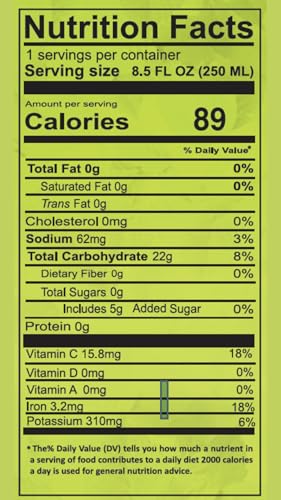 250 ml soursop fruit juice representing natural quality of juice. We found it thick pulpy and good in teste. Feel refreshing and energetic after consuming. We would like to have larger pack if it available. Rest of the things are good