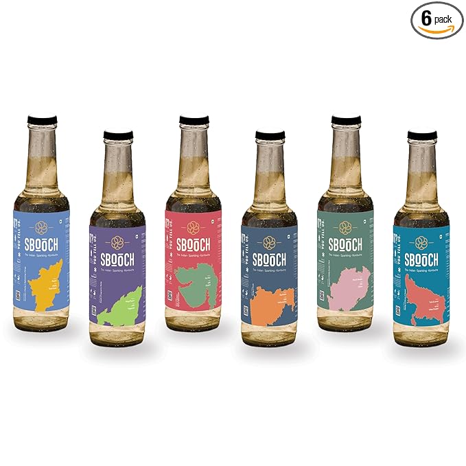 SBOOCH - Indian Sparkling Kombucha Tea is a wellness beverage crafted to support your health journey. Brewed with a blend of tea, filtered water, and kombucha culture, this antioxidant-rich drink is your go-to for gut health and digestion. Free from artificial flavors, preservatives, and additives, SBOOCH offers a pure, natural beverage for a mindful lifestyle. With low caffeine content, its perfect for those seeking a refreshing, alcohol-free option. Its unique flavors celebrate the essence of Indian culinary traditions, delivering a taste thats authentic and invigorating. Whether you're hydrating after a workout, unwinding at the end of the day, or enjoying a guilt-free treat, SBOOCH is your perfect companion. Vegan, gluten-free, and preservative-free, every bottle meets the highest standards of purity and quality. Embrace a healthier future with SBOOCH, a sparkling kombucha tea that combines modern wellness with the timeless richness of Indias flavors.