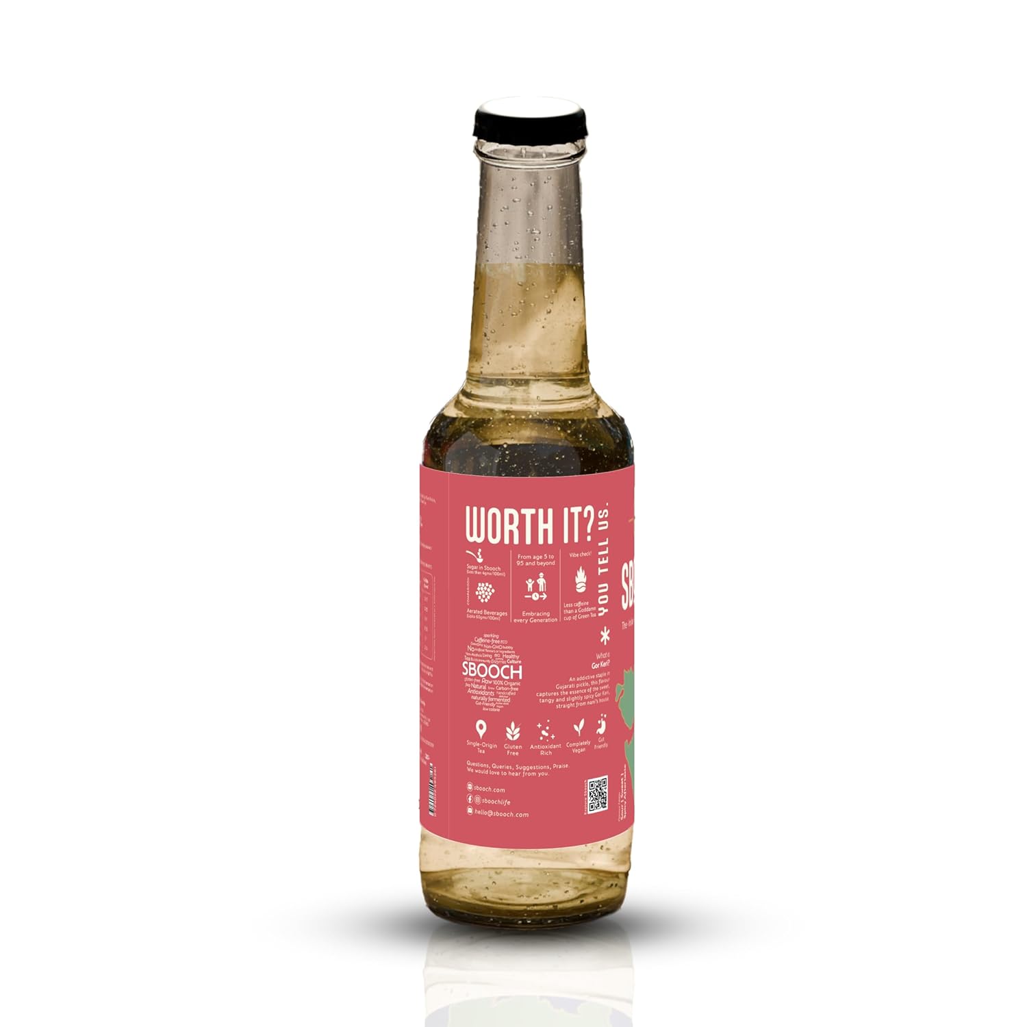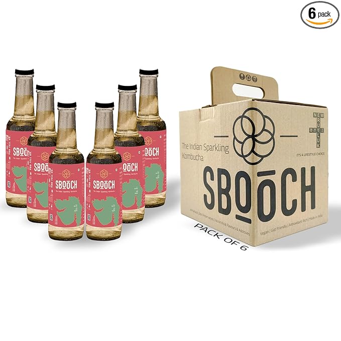 SBOOCH - Indian Sparkling Kombucha Tea is a wellness beverage crafted to support your health journey. Brewed with a blend of tea, filtered water, and kombucha culture, this antioxidant-rich drink is your go-to for gut health and digestion. Free from artificial flavors, preservatives, and additives, SBOOCH offers a pure, natural beverage for a mindful lifestyle. With low caffeine content, its perfect for those seeking a refreshing, alcohol-free option. Its unique flavors celebrate the essence of Indian culinary traditions, delivering a taste thats authentic and invigorating. Whether you're hydrating after a workout, unwinding at the end of the day, or enjoying a guilt-free treat, SBOOCH is your perfect companion. Vegan, gluten-free, and preservative-free, every bottle meets the highest standards of purity and quality. Embrace a healthier future with SBOOCH, a sparkling kombucha tea that combines modern wellness with the timeless richness of Indias flavors.