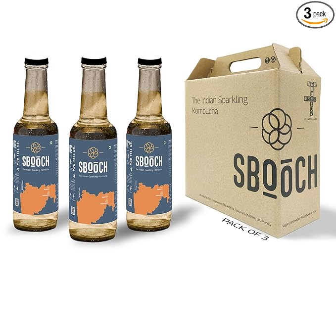 SBOOCH - Indian Sparkling Kombucha Tea is a wellness beverage crafted to support your health journey. Brewed with a blend of tea, filtered water, and kombucha culture, this antioxidant-rich drink is your go-to for gut health and digestion. Free from artificial flavors, preservatives, and additives, SBOOCH offers a pure, natural beverage for a mindful lifestyle. With low caffeine content, its perfect for those seeking a refreshing, alcohol-free option. Its unique flavors celebrate the essence of Indian culinary traditions, delivering a taste thats authentic and invigorating. Whether you're hydrating after a workout, unwinding at the end of the day, or enjoying a guilt-free treat, SBOOCH is your perfect companion. Vegan, gluten-free, and preservative-free, every bottle meets the highest standards of purity and quality. Embrace a healthier future with SBOOCH, a sparkling kombucha tea that combines modern wellness with the timeless richness of Indias flavors.