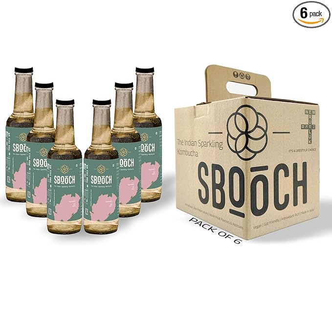 SBOOCH - Indian Sparkling Kombucha Tea is a wellness beverage crafted to support your health journey. Brewed with a blend of tea, filtered water, and kombucha culture, this antioxidant-rich drink is your go-to for gut health and digestion. Free from artificial flavors, preservatives, and additives, SBOOCH offers a pure, natural beverage for a mindful lifestyle. With low caffeine content, its perfect for those seeking a refreshing, alcohol-free option. Its unique flavors celebrate the essence of Indian culinary traditions, delivering a taste thats authentic and invigorating. Whether you're hydrating after a workout, unwinding at the end of the day, or enjoying a guilt-free treat, SBOOCH is your perfect companion. Vegan, gluten-free, and preservative-free, every bottle meets the highest standards of purity and quality. Embrace a healthier future with SBOOCH, a sparkling kombucha tea that combines modern wellness with the timeless richness of Indias flavors.
