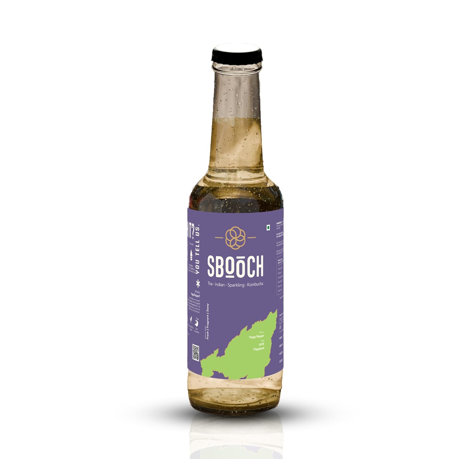 SBOOCH India's Finest Sparkling Kombucha Tea | Gut Friendly & Antioxidant | Zero Preservatives | No Artificial Flavors or Additives | Fermented Beverage Tea (Pack of 1) (Naga Pepper)