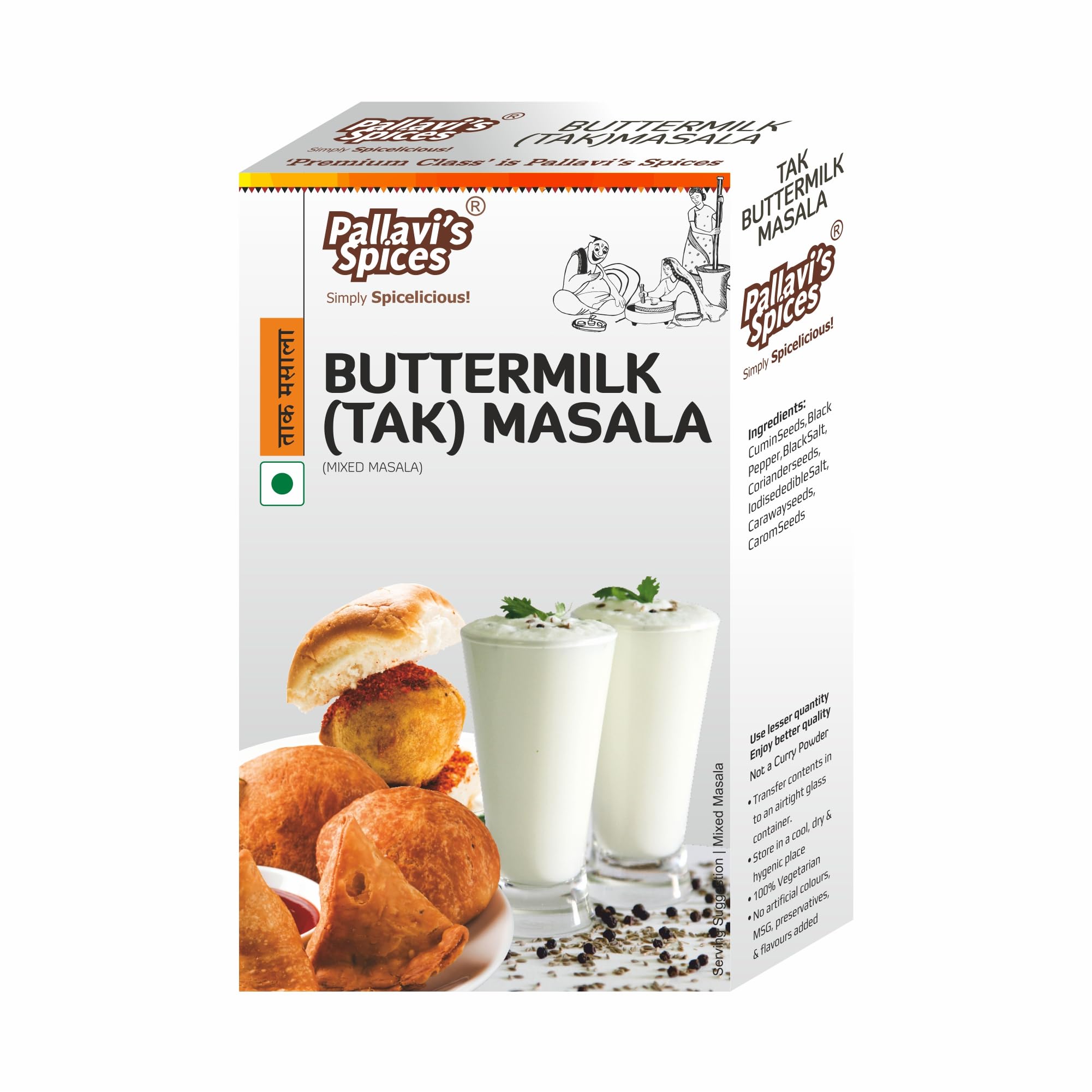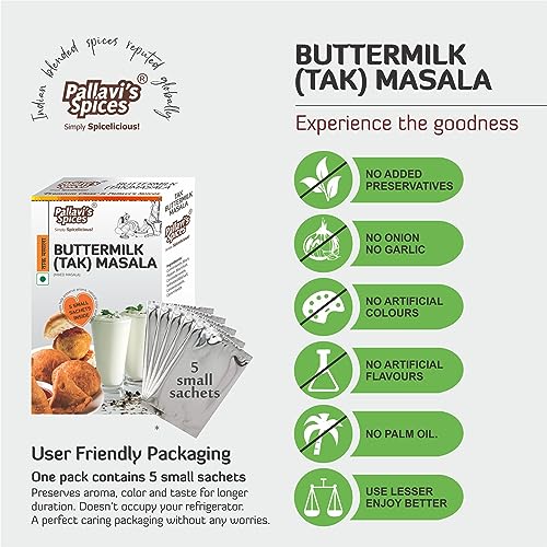 Tak or Buttermilk or Chaas Masala of Pallavi's Spices is made from 07 best quality ingredients. Use lesser quantity enjoy better quality. No added preservatives artificial flavours and msg
