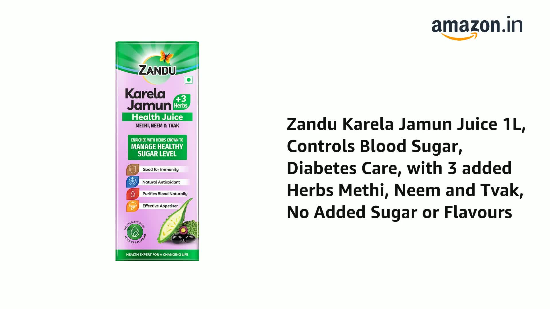 Zandu Karela Jamun + 3 Herbs Health Juice is an Ayurvedic Health Juice. It has the goodness of not only Karela Jamun but also 3 added herbs like Methi Neem & Tvak which help in managing healthy sugar level purifies blood naturally. Zandu Karela Jamun + 3 Herbs Health Juice is also an effective appetiser & is good for immunity too. It is even free from synthetic colours & flavours has no added sugar.
