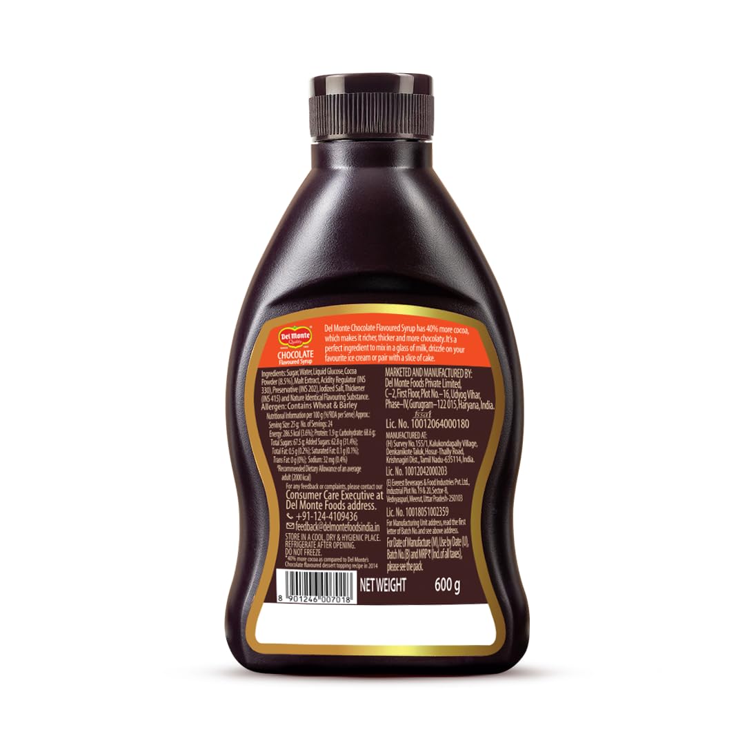 Del Monte Chocolate Flavoured Syrup has 40% more cocoa; which makes it richer thicker and give a touch of chocolaty deliciousness to everything you make. Just pour it in a glass of milk; drizzle on your favourite ice cream or drip it on your slice of cake.