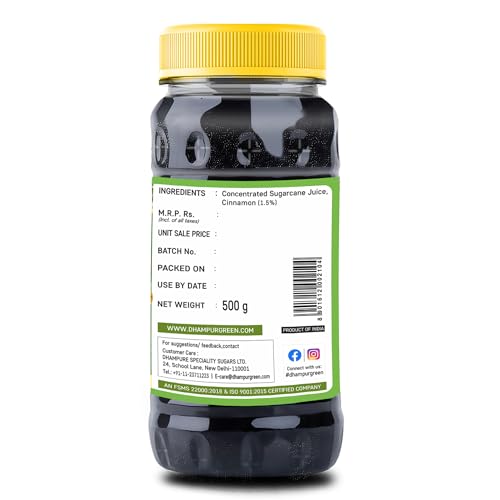 Dhampure Speciality Cinnamon Molasses, 500G | Unsulphured | Jaggery Sugarcane Juice | Liquid Jaggery | Sweetener Syrup For Baking | Concentrated Sugarcane Juice Syrup