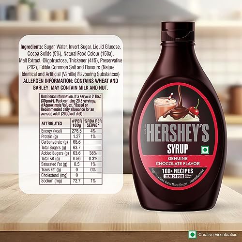 Nothing says sweet like the classic taste of HERSHEY'S Syrup. With the easy squeeze bottles you can create glasses of chilled chocolate milk chocolate floats strawberry sundaes rich hot cocoa and more! Hershey's Chocolate flavor Syrup is perfect for ice cream desserts and beverages. A drizzle of Hershey's Strawberry flavor Syrup over chocolate cake or with milk ice cream and just about anything you can imagine! Hershey's Caramel Syrup is perfect for topping desserts mixing into drinks and adding caramel flavor to baked goods.