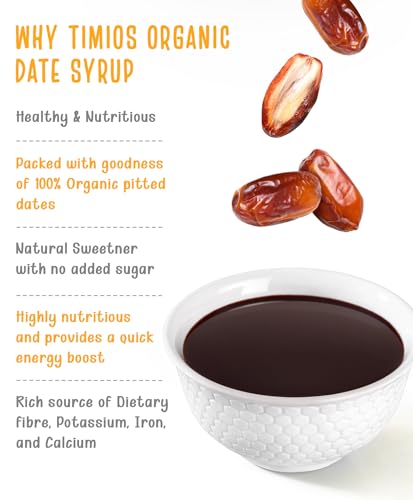 Timios Date Syrup is a tasty natural sweetener that is made from 100% natural Al Barakah dates. It is free from preservatives and chemicals making it a healthy alternative to refined sugar. It has essential vitamins and minerals like potassium magnesium and iron. It also helps to improve overall gut health and digestion. This date syrup can be added to milk smoothies oatmeal yogurt and other recipes that require sweetening making it a popular choice among health-conscious consumers who want to enjoy the benefits of a natural and healthy sweetener.