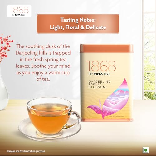1868 by Tata Tea is a celebration of diversity with each carefully selected variant having a unique story to tell. This exclusive collection was launched to celebrate the legacy of the Tata Group on the completion of its milestone 150th year. The collection was first unveiled at the Tata kiosk at the World Economic Forum (WEF) in Davos Switzerland in January 2018. 1868 by Tata Tea Darjeeling Spring Blossom is a premium light tea that releases subtle aroma and refreshing taste! This black tea comes from the soothing dusk of Darjeeling hills trapped inside fresh spring tea leaves. Enjoy the spring delight 1868 by Tata Tea.