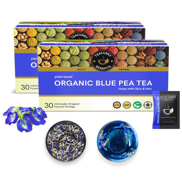 Teacurry Organic Blue Pea Tea is a refreshing caffeine-free herbal tea made from high-quality organic butterfly pea flowers. These flowers are handpicked and carefully dried creating a colorful and wellness tea. Packed with antioxidants this tea is great for your skin helps improve hair and supports overall wellness. It a great addition to your daily wellness routine.
