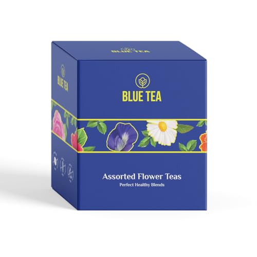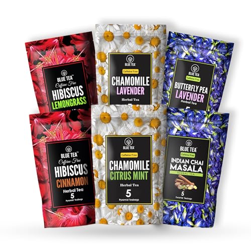 BLUE TEA - Assortment Flower Herbal Sampler Tea Pack (6 Flavors, 30 Tea Bags - Plant Based) | Herbal Tea - Caffeine Free | Natural Ingredients | Featured In Shark Tank | Zipper