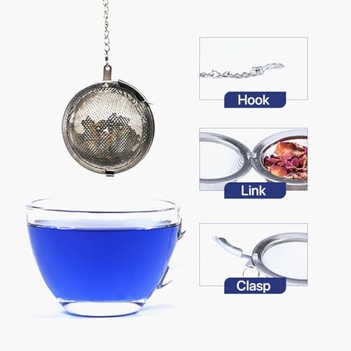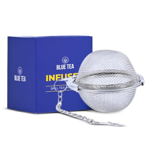 BLUE TEA - Ball Tea Infuser | Premium Strainer for Loose Leaf Tea Herbals Spices with Chain Hook | Premium Tea Filter Steeper Fine- Diffuser | Featured in Shark Tank | Reusable