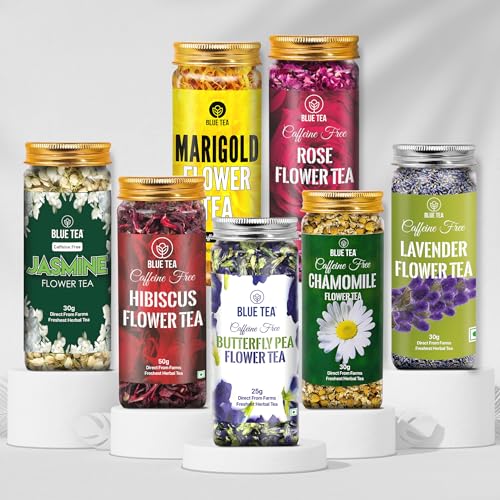 BLUE TEA is Introducing our Herbal Tea Combo: A delightful blend of premium ingredients including Butterfly Pea Hibiscus Chamomile Rose Marigold Jasmine and Lavender. Elevate your tea-drinking experience with this exquisite collection carefully curated for your enjoyment. Each sip promises a harmonious dance of flavors that will tantalize your taste buds and soothe your senses.
