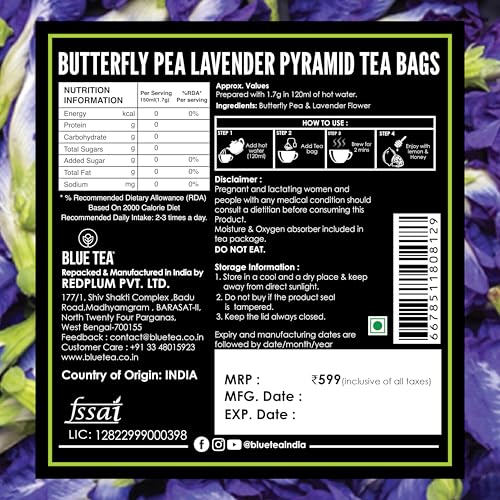 AROMATIC EXPERIENCE: The aromatic blend of lavender and butterfly pea flower provides a sensory delight offering a soothing and fragrant tea experience.