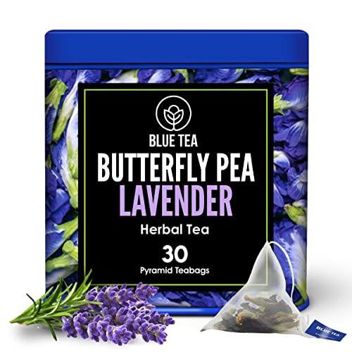 BLUE TEA - Butterfly Pea Flower Lavender 30 Tea Bags - Plant Based | CALMING TEA | Aparajita - Shankhpushpi | Caffeine Free - Detox Tea - Flower Based - Herbal Tea - Non-GMO | Featured In Shark Tank | Premium Tin Pack