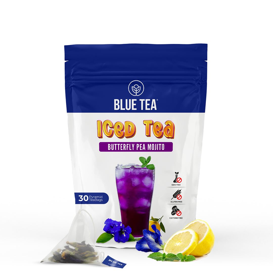 BLUE TEA - Butterfly Pea Mojito Iced Tea - 30 Tea Bags - Plant Based | Refreshing Tea | Caffeine Fee - Exotic Flavor | Flower Based | Featured In Shark Tank | Ziplock Pack