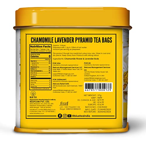 BLUE TEA - Chamomile Lavender Tea - 18 Tea Bags - Plant Based | SLEEP TEA | Herbal Tea - Caffeine Free - Flower Based - Non-Bitter - Non-GMO | Featured In Shark Tank | Premium Tin Pack