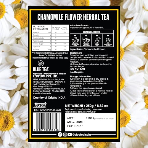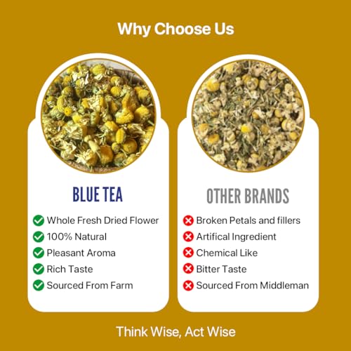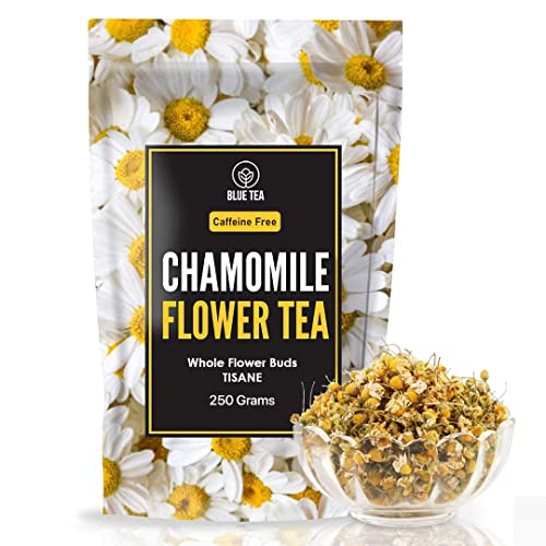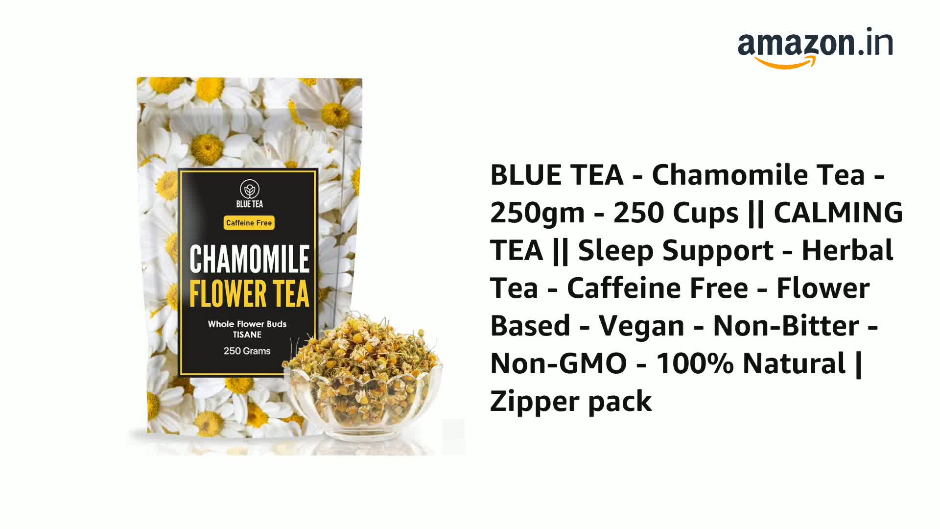 BLUE TEA - Chamomile Tea For Sleep - 250gm - 250 Cups,CALMING TEA,Sleep Support - Herbal Tea - Caffeine Free - Flower Based - Non-Bitter - Non-GMO - Natural | Featured In Shark Tank | Zipper Pack