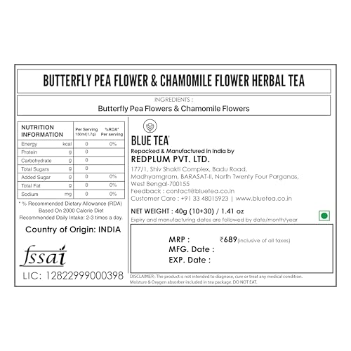 BLUE TEA - Combo Pack - Butterfly Pea Flower Tea (10 gm - 20+ Cups ) + Chamomile Tea For Sleep (30gm - 30 cups) | ANTIOXIDANT RICH - SLEEP | Caffeine Free - Flower Based - Herbal Tea - Non-GMO | Featured In Shark Tank | Zipper & Pet Jar