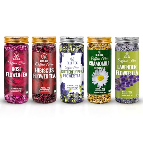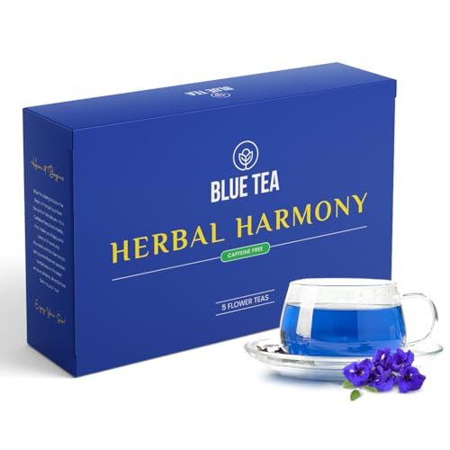 BLUE TEA - Herbal Harmony Tea Gift (5 Flower Tea - 160g) | WELLNESS SURPRISE | Floral Flavors - Caffeine Free - Herbal Tea - Non-Bitter - Natural | Featured In Shark Tank | Variety Pack | Gift Pack