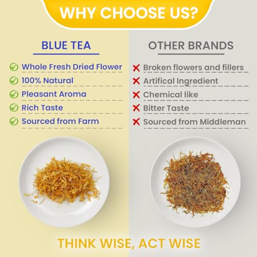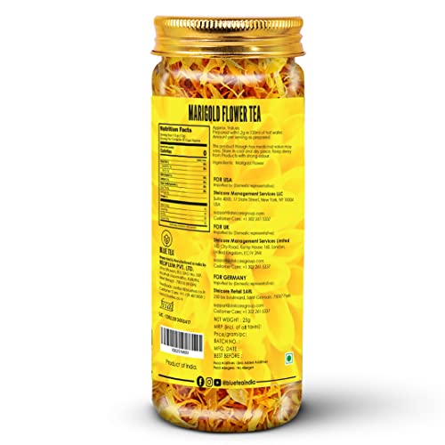 BLUE TEA - Marigold Tea - 25 gm | Natural Sun Dried Marigold Flower || RELIEVES PAIN || Caffeine Free - Flower Based - Herbal Tea - Non-GMO - Gluten Free - Non - Bitter | Featured In Shark Tank | Pet Jar Pack