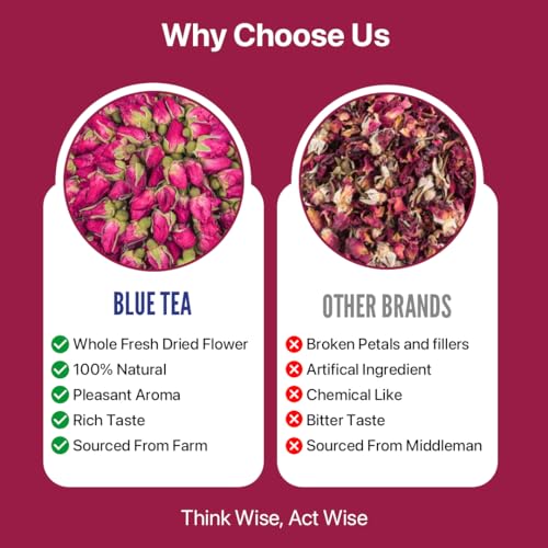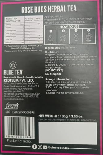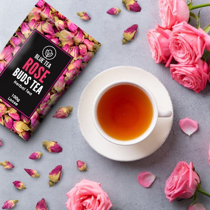 BLUE TEA - Rose Buds Tea - 100gm - 100 Cups | RICH VITAMIN-C | Beautiful Hair & Skin - Caffeine Free - Flower Based - Herbal Tea - Non-GMO | Featured In Shark Tank | Premium Zipper Pack