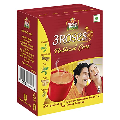 3Roses Natural Care is from the house of Brooke bond and the brand 3Roses. 3 Roses Natural Care Tea contains the goodness of 5Natural Ingredients - Cardamom Ginger Tulsi Mulethi & Ashwagandha all of them extremely beneficial for your body as they enhance immunity while giving a unique flavor to the rich tea. Buy the 3 Roses Natural Care Tea in a 100 gm pack now! Disclaimers: *As per Ayurvedic texts and human studies on NK cell activity the mix of Natural Ingredients in 3 Roses Natural Care tea helps protect from cold cough and flu. Based on Market research studies done on 785 consumers. 3Roses Natural Care tea helps build immunity against common ailments. ** Contains added Natural flavors.