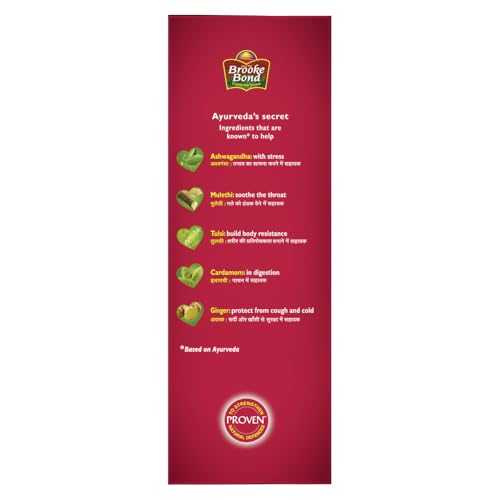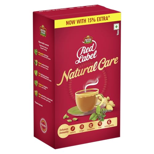 Red Label Natural Care Tea comes with the quality of Brooke Bond which has been trusted by tea consumers since 1869. Made with the goodness of 5 Natural Ingredients- Ginger Cardamom Tulsi Mulethi and Ashwagandha Red Label Natural Care Tea is a tasty way to build your immunity*. Ashwagandha helps cope with stress mulethi helps soothe the throat ginger helps protect from cough and cold cardamom helps in digestion and tulsi helps build body resistance. All 5 ingredients come together in a rich tasty cup of flavoured tea. Consuming 3 cups of Red Label Natural Care Tea daily has been clinically proven to strengthen immunity and help manage common viral infections*. With Red Label Natural Care you don't need to choose between a chai that tastes good and a chai that's good for you. Switch to Red Label Natural Care and take the first step towards building your immunity. *As per Ayurvedic texts and human studies on NK cell activity the mix of herbs in Red Label Natural Care Tea helps protect from common viral infections like cold and cough. Based on post launch consumer study done on 785 Consumers Red Label Natural Care Tea helps build immunity against common ailments. Recommended 3 cups daily.