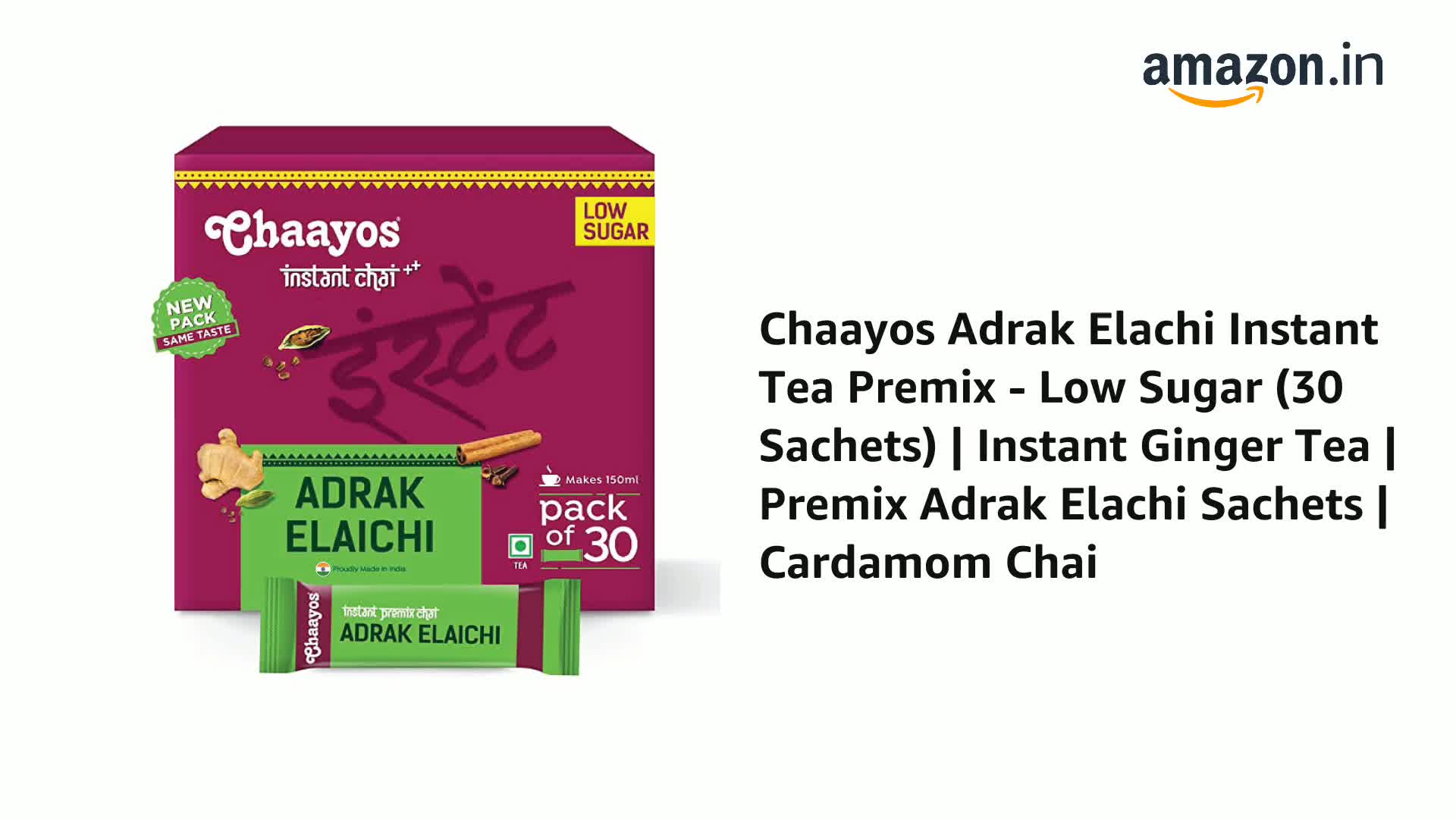 Chaayos Adrak Elachi Instant Tea Premix - Low Sugar (30 Sachets) | Instant Ginger Tea | Premix Adrak Elachi Sachets | Cardamom Chai