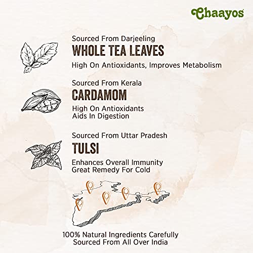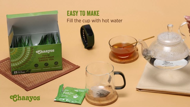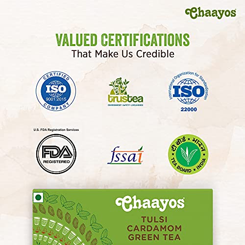 Chaayos Green Tea Bags - Tulsi Cardamom (25 Pyramid Tea Bags) | Tulsi and Cardamom Flavoured Green Tea | Green Tea | Herbal Tea | Tulsi Green Tea | Detox Green Tea