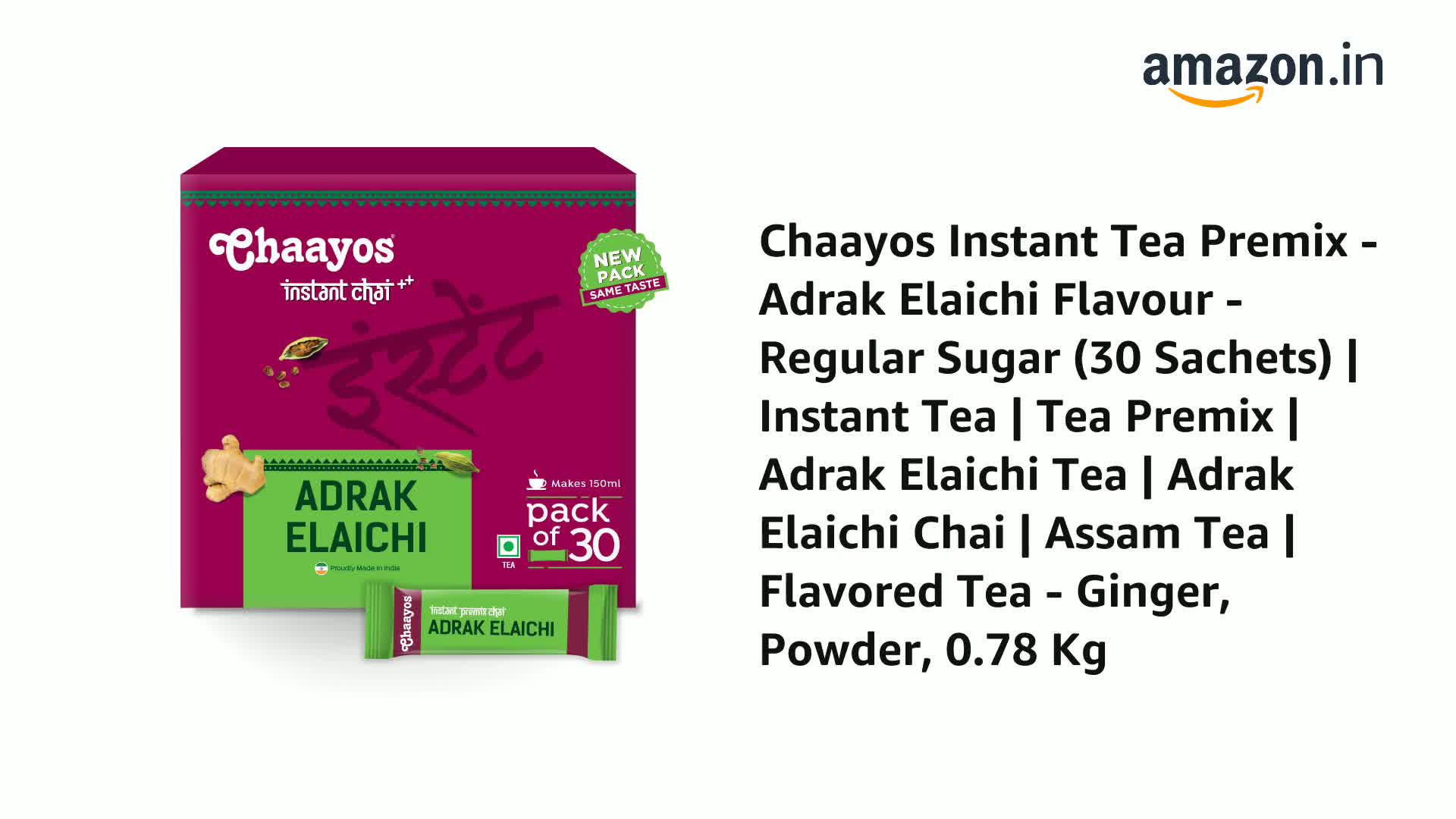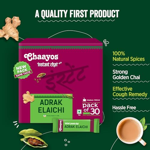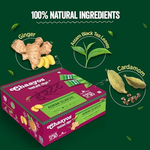 Chaayos Instant Adrak Elaichi Tea Premix - Regular Sugar (30 Sachets) | Assam Flavored Ginger Tea Powder 0.78 Kg