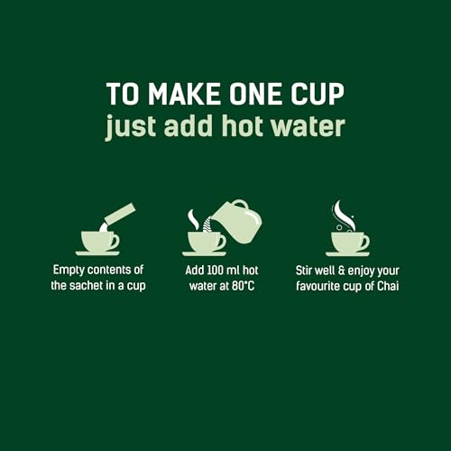 INSTANT TEA: Get a hot cup of chai in less than 2 minutes! Empty the sachet contents in a cup fill it up with boiling water and stir well. Each sachet with 14gms premix makes a 100ml cup of chai.