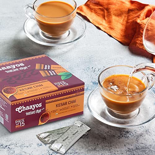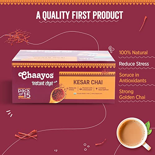 Chaayos Instant Tea Premix-Kesar-Regular Sugar (15 Sachets)|100% Natural Saffron|Kesar Chai|Masala Chai|Assam Tea|Desi Chai|Flavoured Tea|Premix Tea|Tea Mix Instant Sachets390 Pounds - Assam Powder