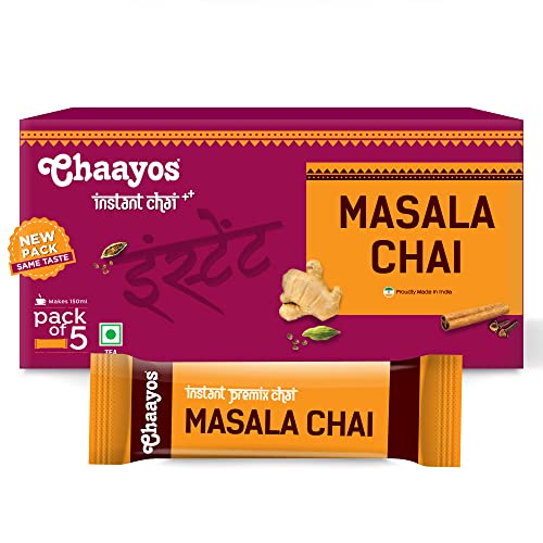 Chaayos Instant Tea Premix - Regular Sugar - Masala Flavour (5 Sachets) | Instant Tea | Tea Premix | Masala Tea | Masala Chai | Assam Tea | Flavored Tea | Tea Masala Mix