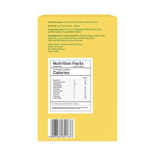 Chaayos Lemon Instant Ice Tea Premix - Refreshing Energy Drink Pack of 10 Sachets
