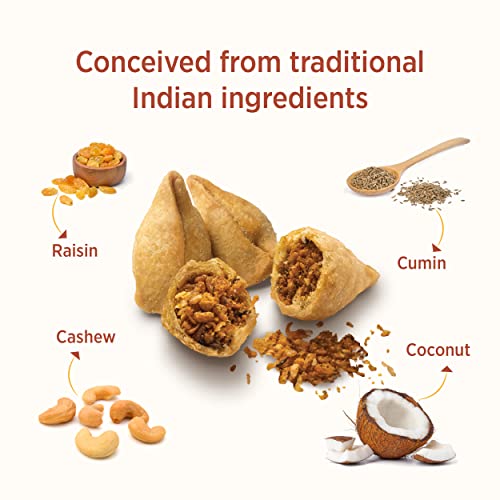 AUTHENTIC DELIGHT: Our mini Samosas carries the authentic sweetness and spice of pure Coconut Raisins and Cashew with hints of Dry Mango Powder bringing in the traditional flavours from Maharashtra and Gujarat. With a crunchy texture and a melt-in-the-mou