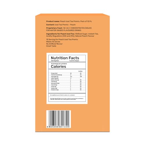 Chaayos Peach Instant Iced Tea Premix - Refreshing Energy Drink Pack of 10 Sachets
