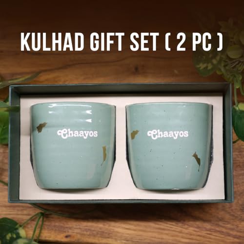 Chaayos Premium 2 Set Coffee/Tea Glazed Ceramic Kulhad Gift Box 150ml Each Capacity