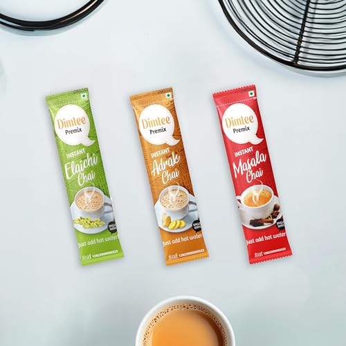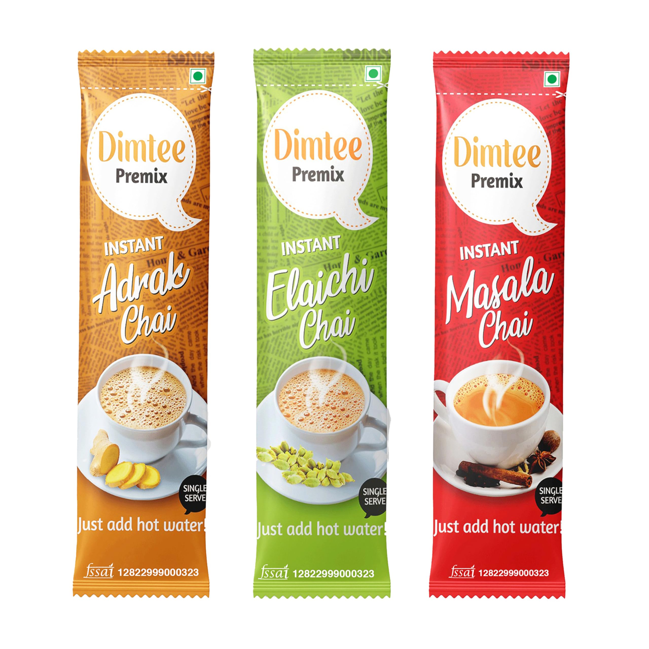 Chaizup Dimtee 1 Min Instant Assorted Tea Pack - 30 Sachets | Masala Elachi & Adrak Flavours | 30 Servings | 375g (3 Packs 10 Flavours Each)