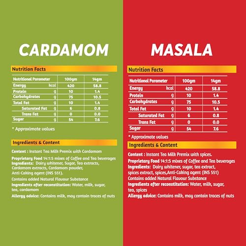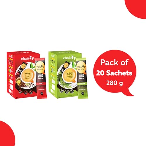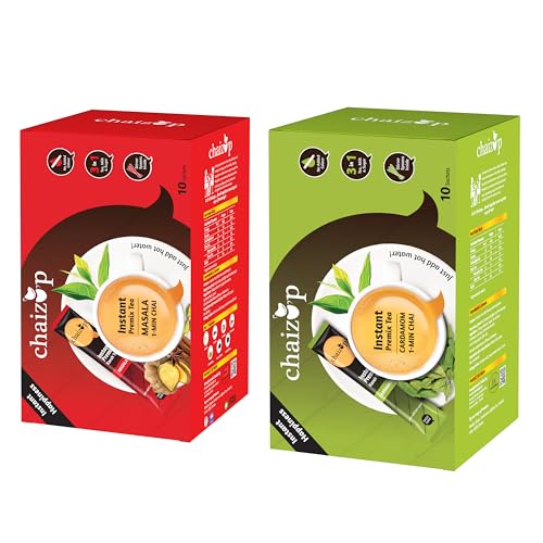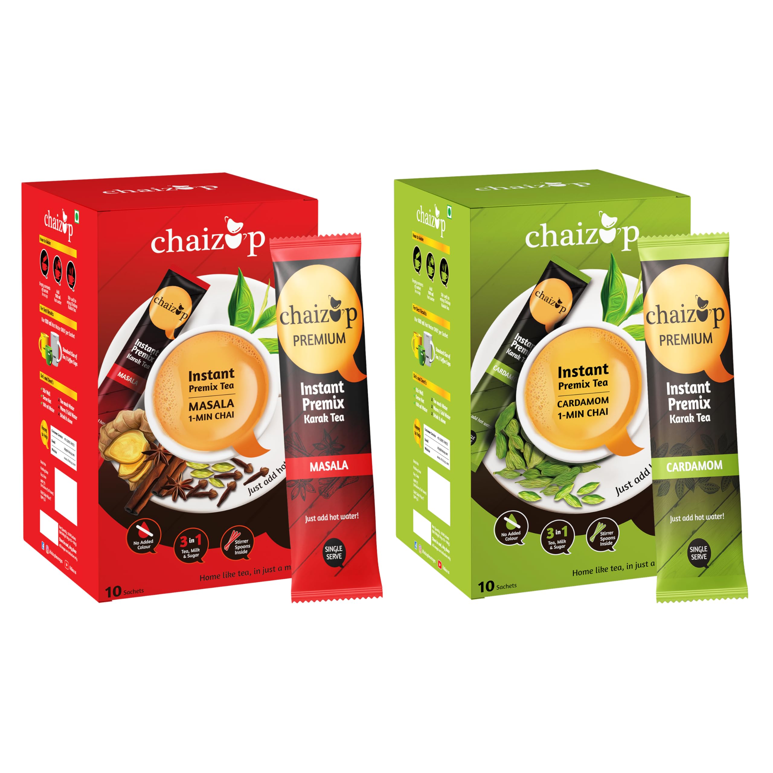 Chaizup Instant Cardamom and Masala Premix Tea - Karak Ready to Drink Chai with Low Sugar | Masala and Elaichi Flavoured Tea | Instant Premix Tea| Masala Tea Powder | Combo Pack (10 * 2)