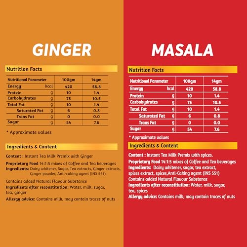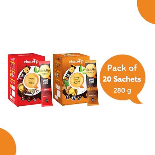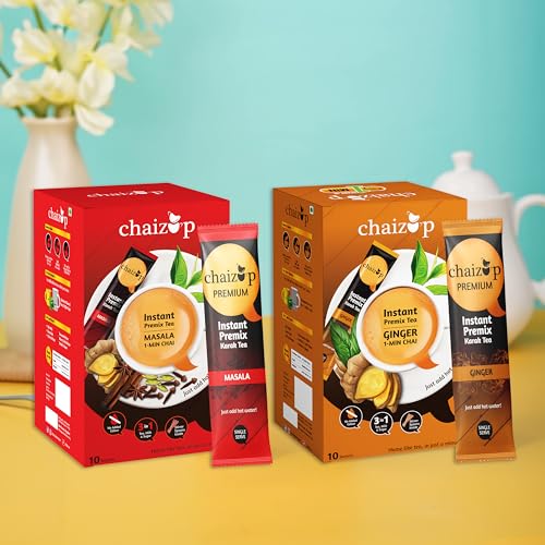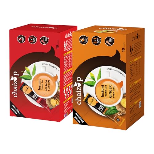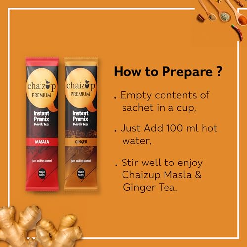 Chaizup Instant Ginger and Masala Premix Tea - Karak Ready to Drink Chai with Low Sugar |Aromatic and Flavoured Tea | Instant Premix Tea| Masala Tea Powder | Combo Pack (10 * 2)
