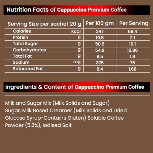 Chaizup Premium 1-Min Instant Cappuccino Coffee Premix - 6 Sachets120 Gm