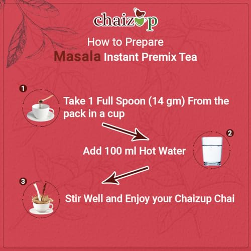 USAGE INSTRUCTIONS : Get a hot cup of chai in less than 2 minutes! Empty the sachet contents in a cup fill it up with boiling water and stir well. Each sachet with 14gms premix makes a 100ml cup of chai.