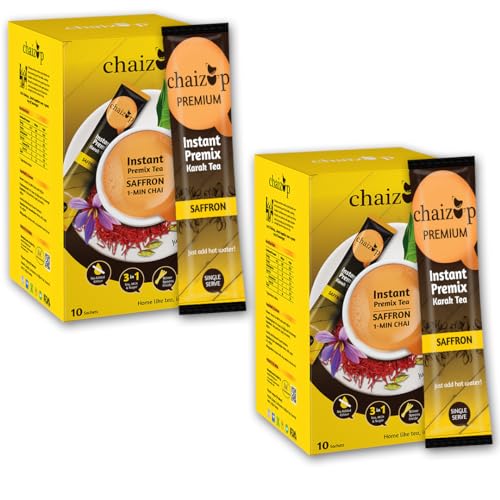 Chaizup Premium 1 Min Instant Saffron Tea Premix - 20 Sachets | Saffron Flavours | 20 Servings | 280g (Pack of 2)