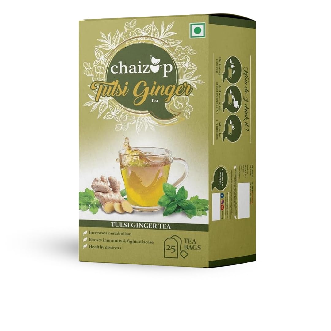 About this item TEA BENEFITS : Builds a stronger immunity alleviates stress improves memory calms an anxious mind helps to get better sleep keeps sugar in control aids digestion keeps a healthy heart aids in weight loss natural body detox and makes skin glow Ginger is known for managing symptoms associated with indigestion like bloating abdominal distension & flatulence. Tulsi helps in boosting immunity and reduces stress levels Daily consumption of this Ginger Tulsi tea helps in managing respiratory ailments like common cold & cough nasal and throat irritation.
