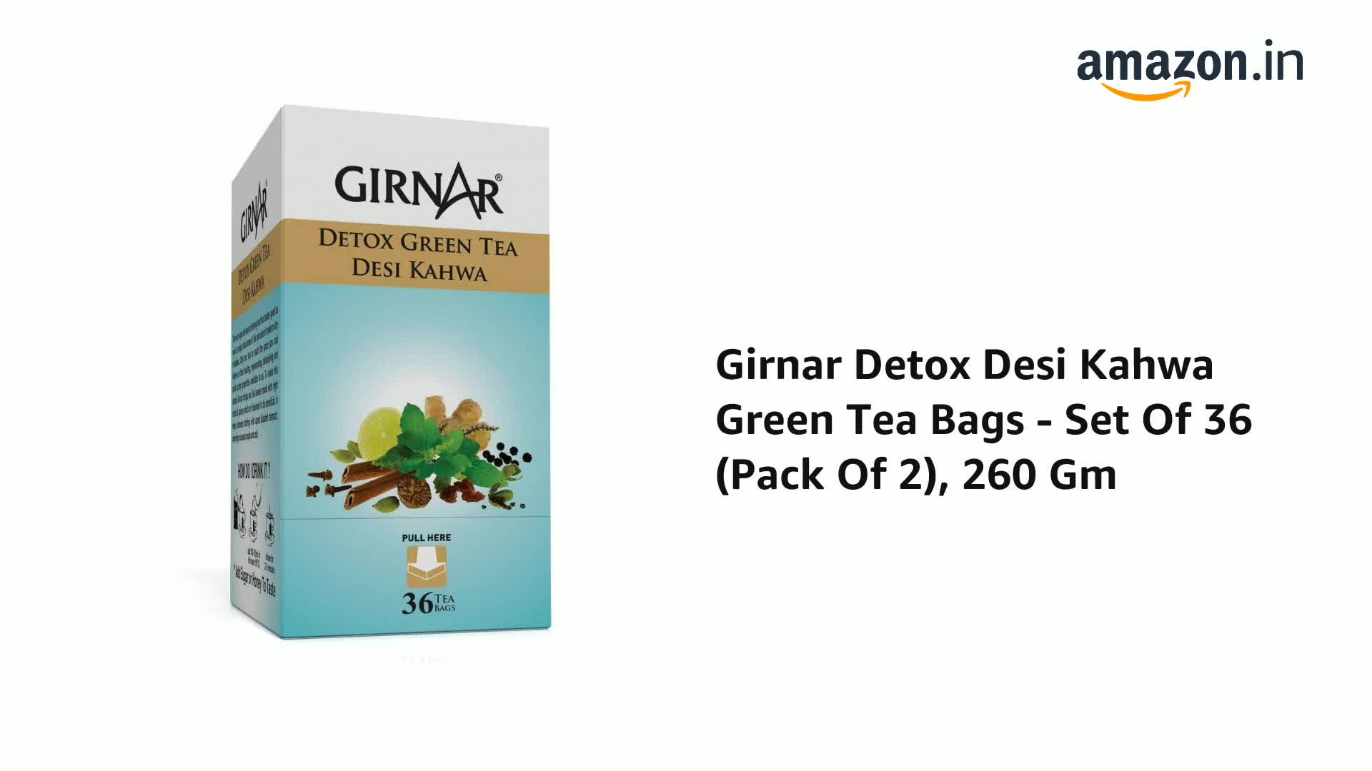 Girnar Detox Desi Kahwa Green Tea Bags - Set Of 36 (Pack Of 2), 260 Gm